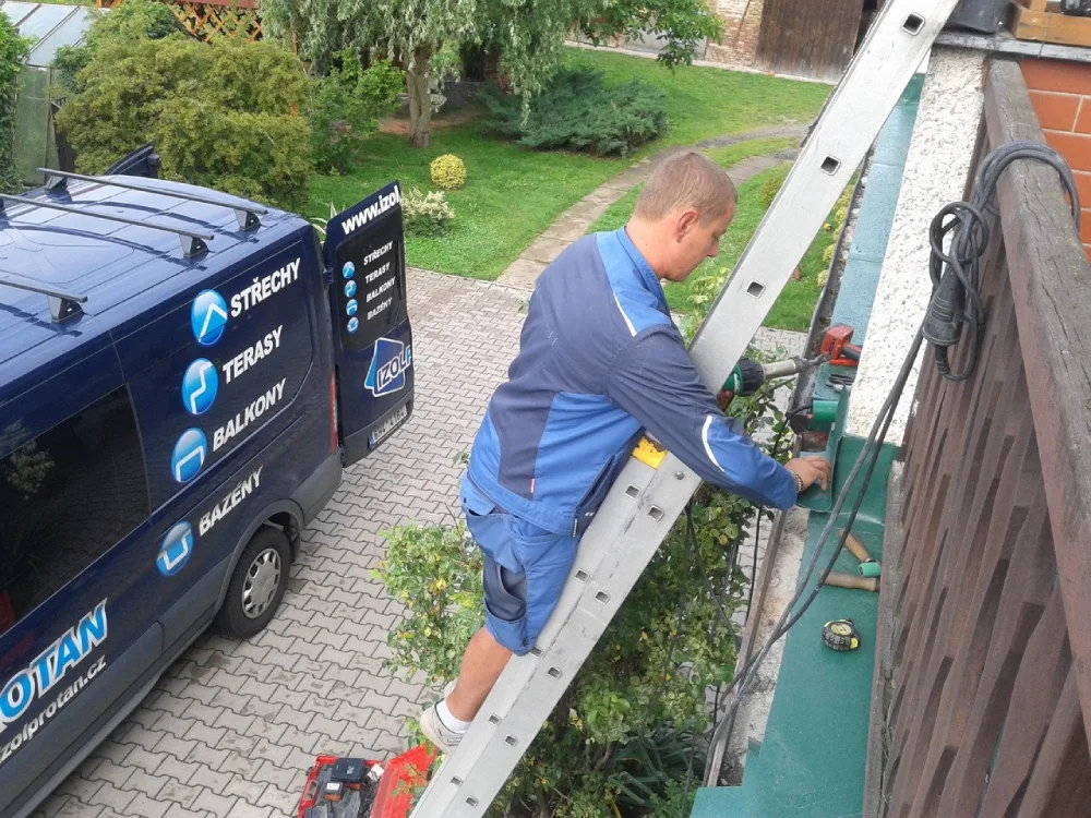 Pan Jakub Janda z Nové Vsi pod Pleší vlastní starší domek s otevřeným balkonem v šikmé střeše a na podlaze má kachličky. Spárovací hmota a obložení stěny při podlaze začaly prosakovat, navíc se voda drží uprostřed a nestéká do kanálku v rohu a tím prosakuje do pokoje pod balkónem. Zaujalo jej naše řešení izolace prostřednictvím materiálu Protan GT 2,4 mm.