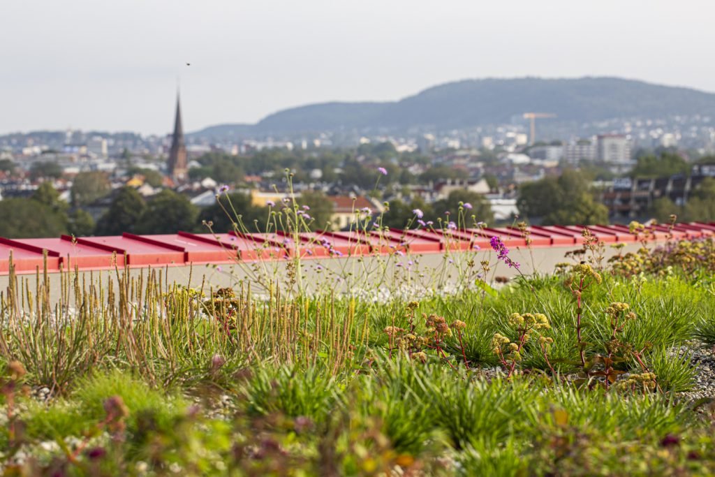 Projekt Vega Scene (budova v centru Osla, v níž najdeme tři kina, divadelní sál, konferenční místnost, jídelny či kanceláře) získal sdílené 2. místo na „skandinávském šampionátu v zelených střechách“, který vyhlašuje asociace SGIA (Scandinavian Green Infrastructure Association). Projekt spatřil světlo světa díky úzké spolupráci mezi stavební firmou Urbanium, architektektonickou kanceláří Asplan Viak, vědci Norského biologického institutu (NIBIO), Bergnapp AS (přední dodavatel zelených střech v Norsku) a specialisty na střechy z Protan AS a vedl ke konceptu k tzv. modrozelené střechy. „Střecha byla navržena tak, aby fungovala jako „správa“ dešťové vody a vegetace. Projekt jasně ukazuje, že se střecha může vyvinout v něco nového pomocí kreativity, vědy a inženýrství,“ uvedli hodnotitelé v posudku.