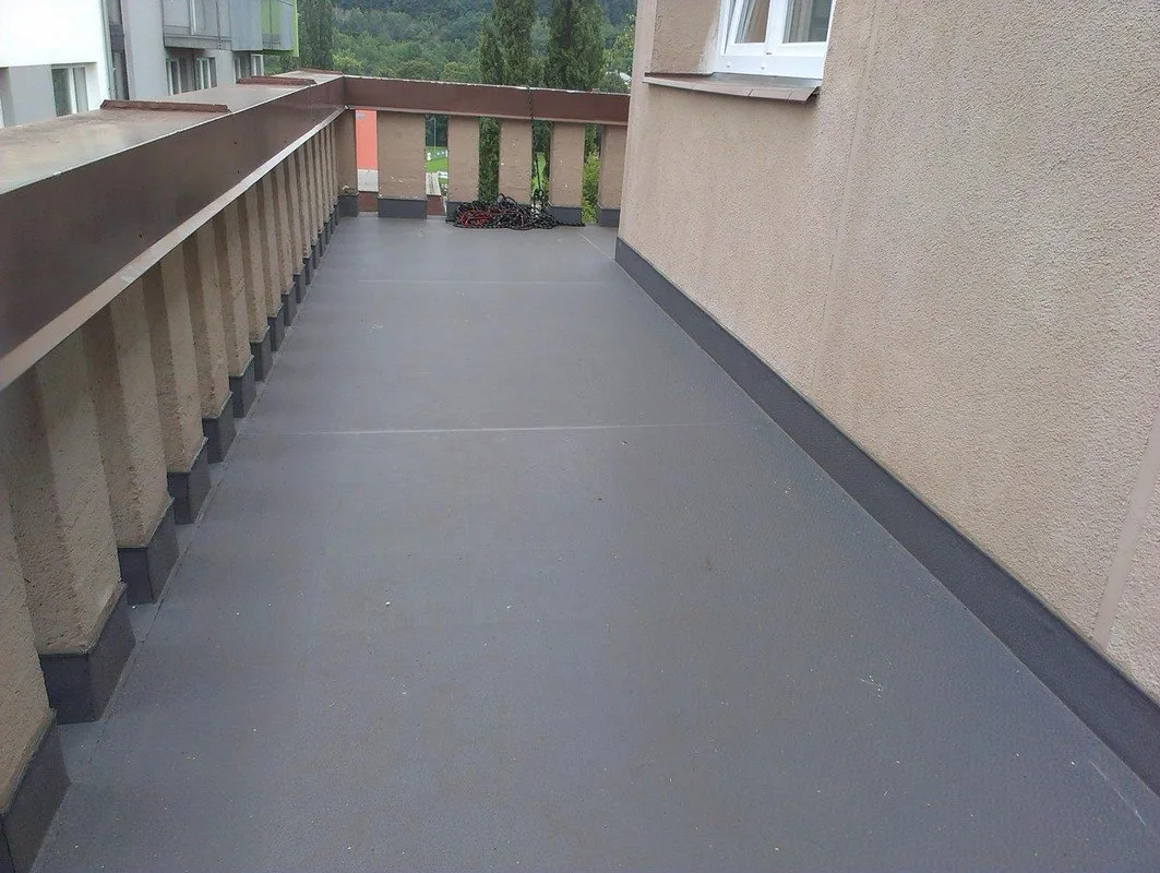 Na přelomu června a července proběhla v pražských Vysočanech v ulici Čihákova náročná rekonstrukce teras se složitými detaily, možná úskalí znamenala zejména izolace venkovních žlabů o celkové délce 55 metrů v patnáctimetrové výšce a opracování 153 ks sloupků z vnější strany objektu. Hydroizolace byla provedena na původní dlažbu, kterou již výrazně protékalo do spodních bytů. Protan GT 2,4 mm byl položen v ploše, detaily byly opracovány poddajnější fólií Protan SE 1,5 mm. Hydroizolaci provedl pan Petr Synek z Prahy (izolsynek@seznam.cz, 603 146 039).